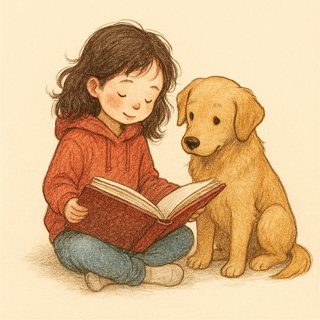 文字通り、子どもが本を音読するのをそばでじっと聞いてくれるのが、読書介助犬といわれる犬です。